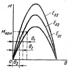 Если внешний момент при работе машины в точке С снижается, то угол уменьшается, электромагнитный момент возрастает, что приводит к дальнейшему уменьшению угла и переходу к работе в устойчивой точке А.