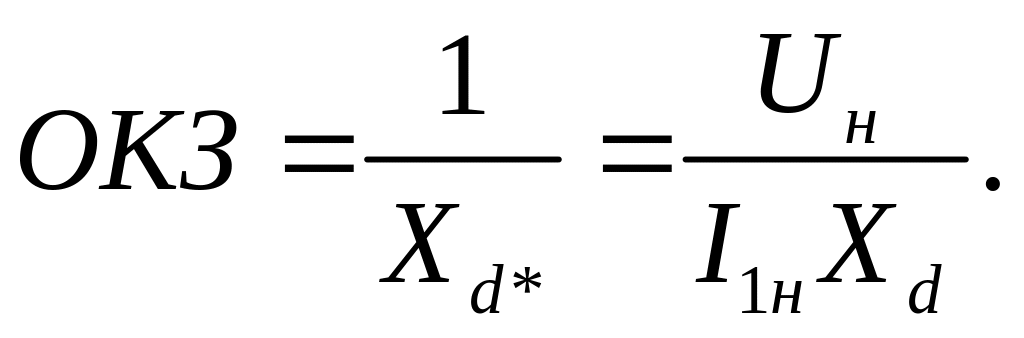 Величину установившегося тока короткого замыкания, который возникает при номинальном токе возбуждения, характеризует отношение короткого замыкания: