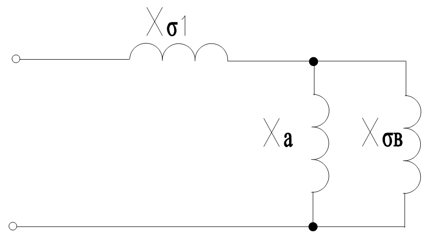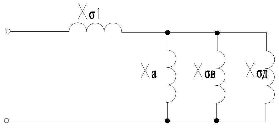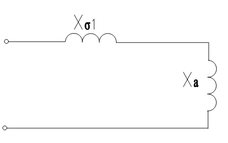 Индуктивное сопротивление машины, пропорциональное магнитной проводимости пути потока, при этом уменьшается до сверхпереходного значения. Одну фазу обмотки генератора можно представить схемой замещения: