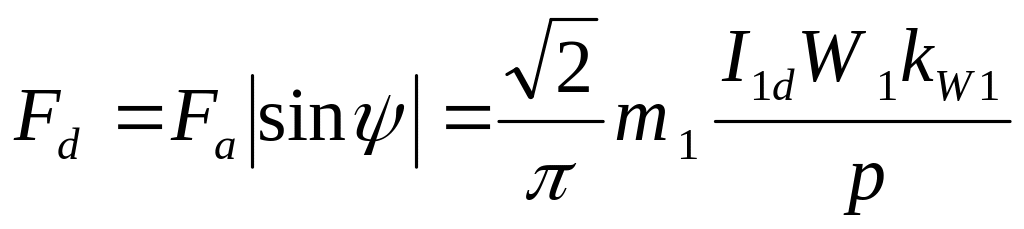 Магнитодвижущая сила обмотки якоря Fa, ее продольная и поперечная составляющие Fd, Fq отличаются по форме от МДС обмотки возбуждения Ff. Магнитодвижущая сила якоря распределена по поверхности якоря синусоидально; распределение МДС возбуждения значительно отличается от синусоидального. Это затрудняет сложение МДС якоря и МДС возбуждения при расчете режимов работы машины. Поэтому для упрощения расчетов синусоидальные МДС якоря заменяются эквивалентными МДС обмотки возбуждения, определенными из условия сохранения основных гармонических индукции в зазоре и ЭДС обмотки якоря.