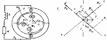 Магнитное поле обмотки якоря можно представить в виде суммы двух полей, созданных продольной составляющей МДС обмотки Fd, ось которой совпадает с осью полюса d, и поперечной составляющей Fq, ось которой совпадает с осью межполюсного пространства: