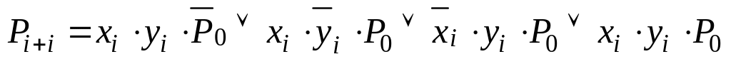 Логические выражения для выходных величин (формулы Si и Pi+1 получены из таблицы, где значения Si и Pi=1):
