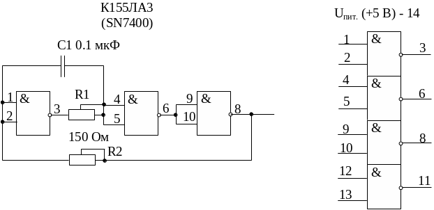 Аналогично генераторам, формирователи импульсов также можно собрать на логических элементах ИС, где выходной сигнал можно формировать: