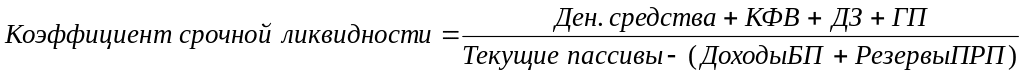 Коэффициент срочной ликвидности характеризует способность предприятия выполнять краткосрочные обязательства за счет более ликвидной части текущих активов.