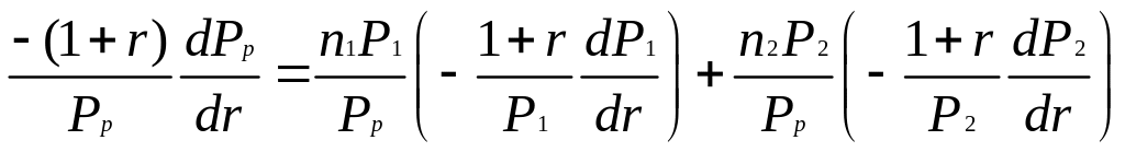 Левая часть равенства (6.3) представляет собой дюоацию портфеля. Выражения в скобках в правой части равенства — это соответственно дюрации первой и второй облигаций. Поэтому можно записать: