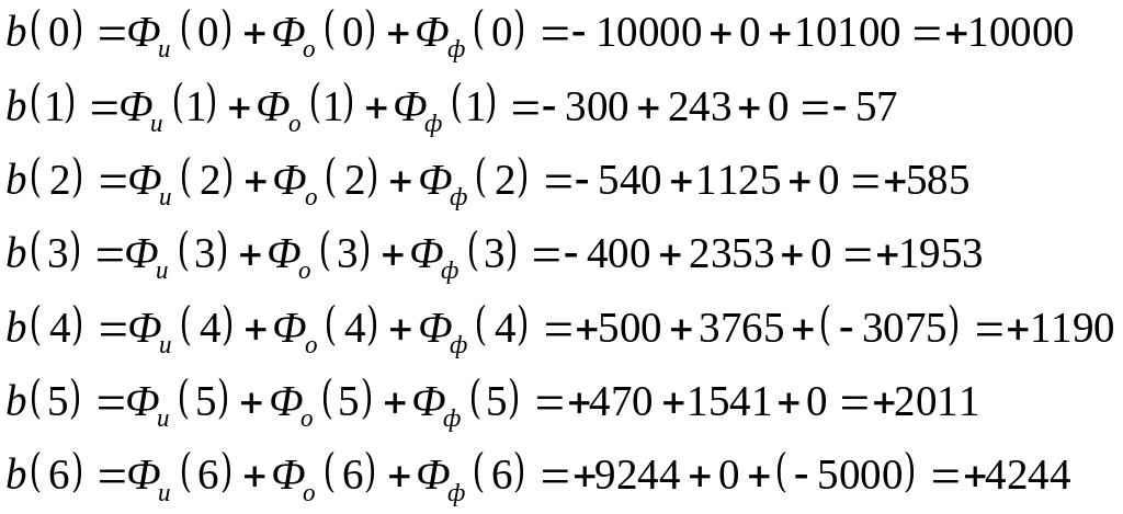 Вывод о приемлемости проекта по финансовым возможностям фирма делает на основе рассчитанного сальдо накопленных денег B(t), которое на любом шаге расчета k находят как сумму:
