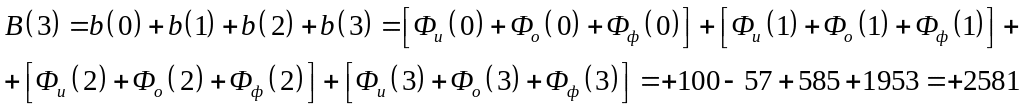 Так, например, сальдо накопленных денег В (3) на третьем шаге находят как сумму: