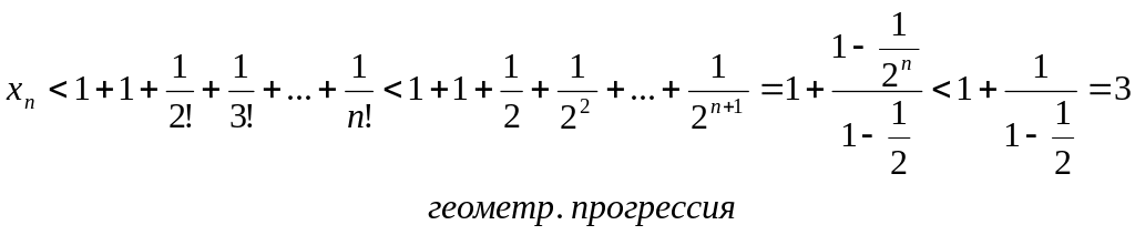 Докажем теперь, что при любом n ее члены не превосходят трех: xn < 3.
