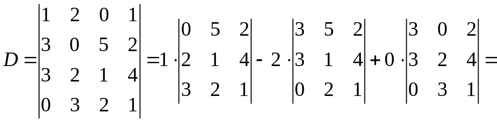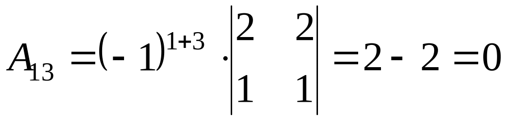 Решение: 1) Находим определитель исходной матрицы: на первом шаге умножаем элементы третьего столбца на (-1) и складываем с элементами первого столбца, затем элементы третьего столбца умножаем на (-2) и складываем с элементами второго столбца, таким образом, получаем два нуля в первой строке и раскладываем определитель по первой строке: