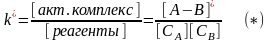 Для элементарной биомолекулярной реакции А + В = АВ.
