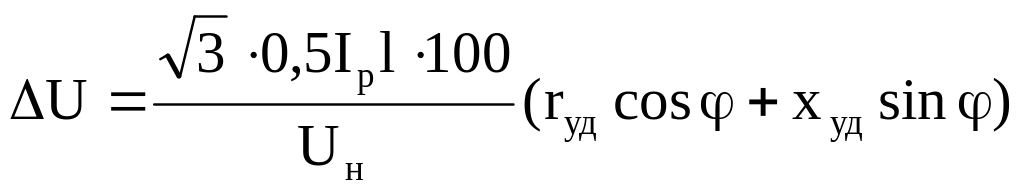 Потери напряжения в цеховых сетях, выполненных проводами или кабелями, определяют по формуле