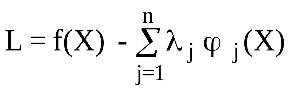 Аналитическое решение задачи при ограничениях типа равенства и дифференцируемости оптимизируемой функции возможно по методу Лагранжа. Для этого вводятся множители Лагранжа j и с их применением формируется функция L по выражению:
