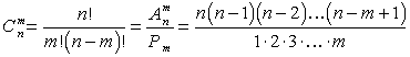 С из n по m элементов — соединения, отличающиеся только самими элементами.