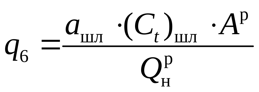 Потеря с теплом шлака q6 , %, определяется по следующей формуле: