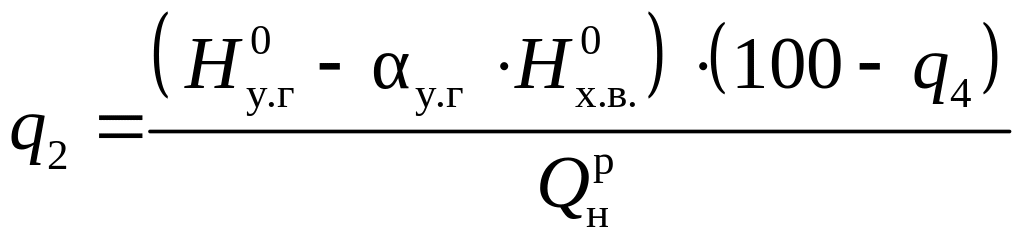 Потеря тепла с уходящими газами, %, зависит от заданной температуры уходящих газов tу.г. и определяется по формуле: