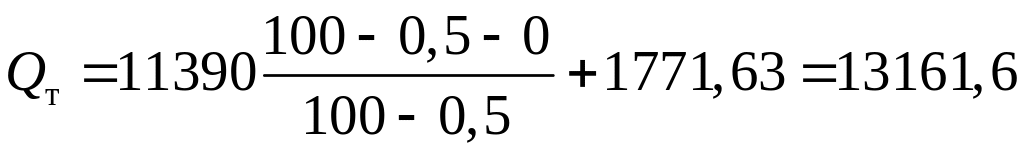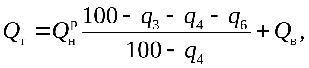 где Qт – тепловыделение в топочной камере, кДж/кг;
