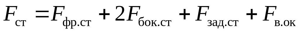 Полная площадь поверхности стен топки Fст, м2, вычисляется как сумма плоскостей, ограничивающих объем топочной камеры: