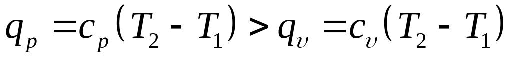 Чтобы убедиться в этом можно в два одинаковых цилиндра поместить по 1 кг одного и того же газа с одинаковыми параметрами. Но, так как поршень одного из цилиндров заклинен, и происходит процесс нагрева газа при V=const, то в этом цилиндре газ нагреется быстрее, получив при этом меньшее количество тепла, которое расходуется только на нагрев газа: