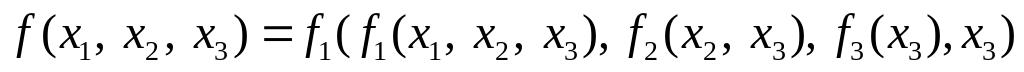 Задача синтеза: для данного базиса функциональных элементов и произвольной системы булевых уравнений (2) построить схему (1) из заданных ФЭ, реализующую эту систему уравнений.