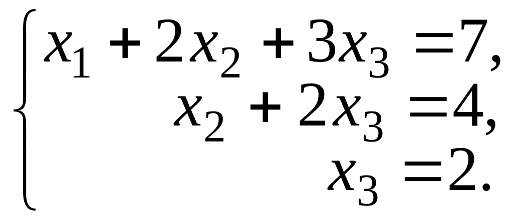 Сначала рассмотрим метод Гаусса на примере системы трёх линейных уравнений с тремя неизвестными в предположении, что главный определитель системы отличен от нуля1. В этом случае суть метода Гаусса состоит в преобразовании данной системы в систему с треугольной матрицей.