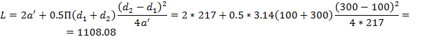 amin= 0.55(d1+d2)+T=0.55(100+2580)+8=217 мм