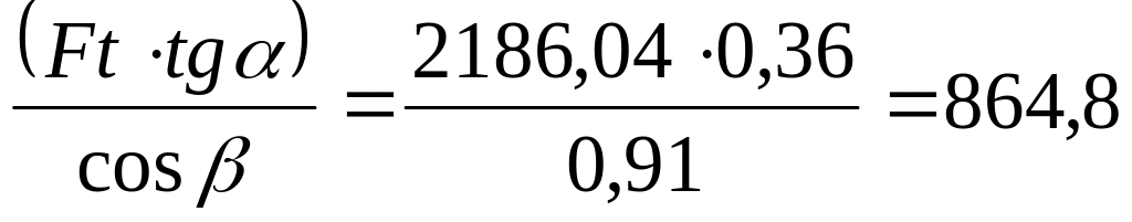 Fa = Ft · tgβ = 2186.04 · 0.45 = 983.72