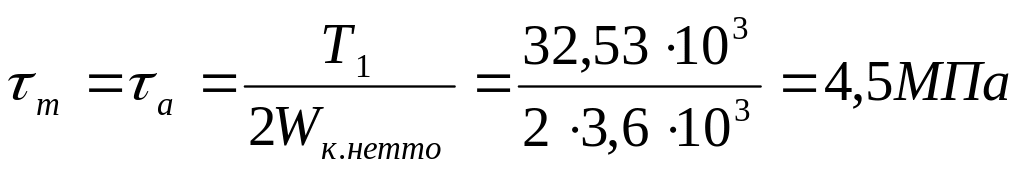 де Т1 – обертальний момент; Wк.нетто - полярний моменти опору перерізу вала.