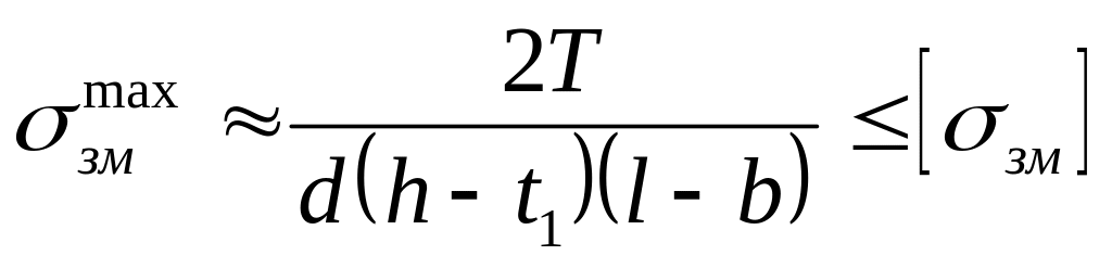 Напруження зминання і умова міцності визначаємо за формулою: