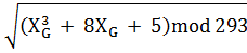 Требование, предъявляемое к заданной эллиптической кривой для построения системы аутентификации полностью удовлетворено, эллиптическая кривая не сингулярна. Абонентом «А» случайным образом на принятой эллиптической кривой выбирается генераторная точка XG (в качестве примера принимается XG = 18. После числового значения абсциссы генераторной точки производится вычисление числового значения ее ординаты YG из принятого уравнения эллиптической кривой ZP (a; b) : Y2 = (X3 + 8X + 5) mod 293
