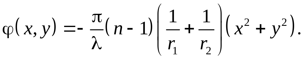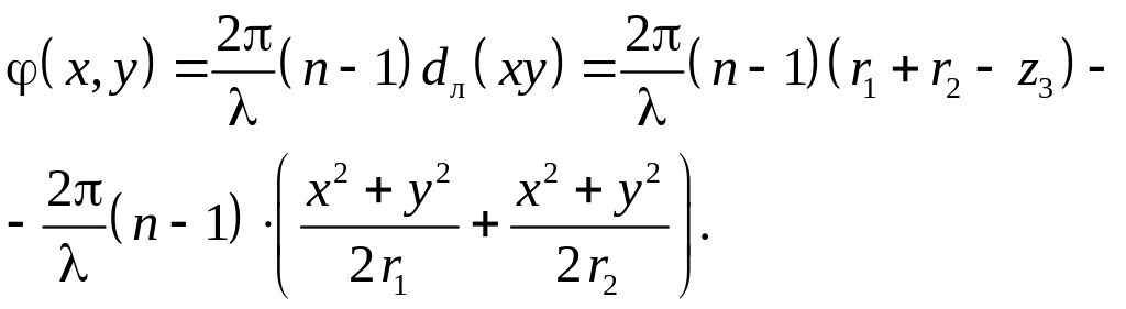 В этом выражении первое слагаемое также представляет постоянный фазовый сдвиг, не зависящий от переменных х, у. Отбросив это слагаемое, получим: