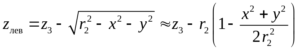 Здесь z3 – координата центра сферы с радиусом r2 по отношению к точке , где расположен центр сферы с радиусом r1.