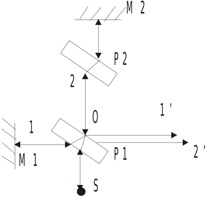 получаем луч 1’. Луч 2 идет к зеркалу м2,