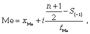 где xМе - нижняя граница медианного интервала; i - величина интервала; S-1 - накопленная частота интервала, которая предшествует медианному; f - частота медианного интервала.