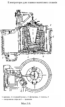 Плавку магнієвих сплавів ведуть у єлектрогорнах (Мал.3.6.) і інших печах. При цьому використовують тиглі, футеровані магнезитом, або литі сталеві.