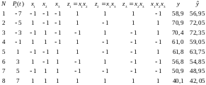 Для проверки адекватности полученной модели с помощью F-критерия Фишера по полученной модели рассчитываем предсказываемые модели значений в каждом из 8 опытов реализованного эксперимента.