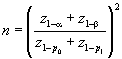 В числителе формулы для подсчета п стоит сумма двух квантилей, связанных с рисками a и b, причем с уменьшением рисков, как видно из таблицы 2, сумма квантилей растет. Даже при весьма высоких рисках, например a = b = 0,2, числитель формулы равен 1,68.