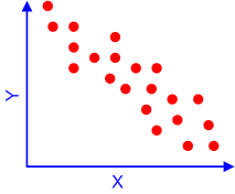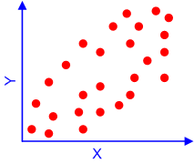Диаграмма разброса является удобным и простым инструментом для выявления взаимосвязи парных данных. Однако сильная взаимосвязь не обязательно означает, что одна переменная напрямую связана с другой переменной. В частности, может быть третья переменная, которая влияет на исследуемые парные данные и которая в итоге «кластеризует» точки на диаграмме разброса. |