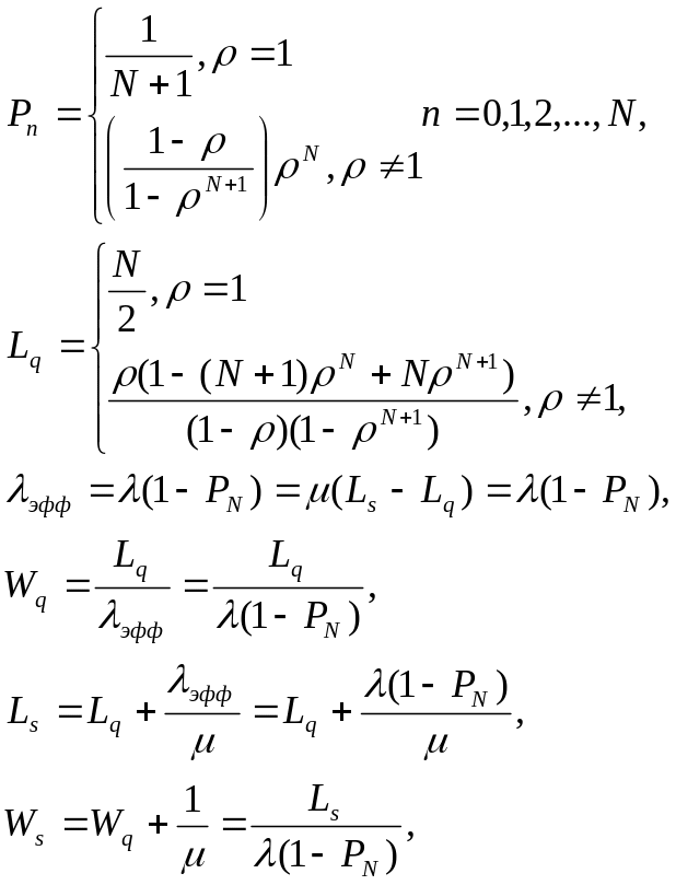 Для модели (М/М/1):(GD/N/∞) используются следующие формулы расчета параметров: