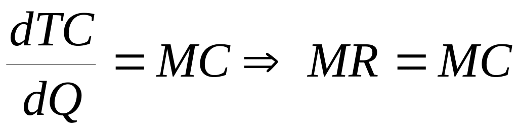 Современная экономическая теория утверждает, что максимизация прибыли или минимизация убытков достигается тогда, когда предельный доход равен предельным издержкам MR = MC