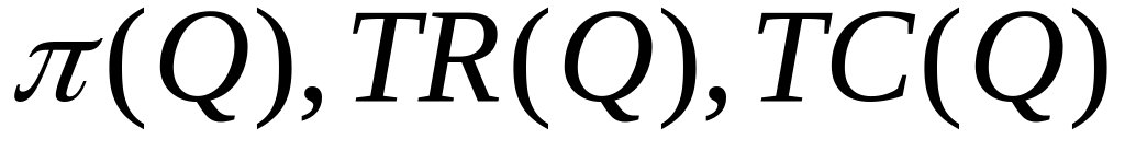 Прибыль равна общая выручка минус общие издержки. Прибыль является функцией от количества (объема производства).