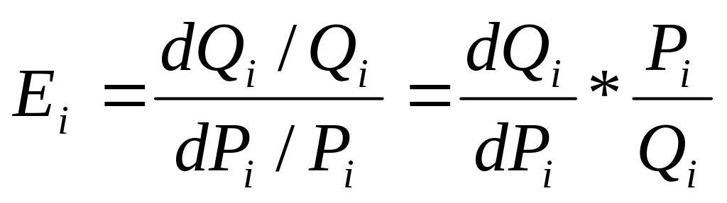 Ценовая эластичность спроса указывает нам, какое процентное изменение спроса последует после 1%-ного изменения (увеличения или уменьшения) цены на товар. Прямая эластичность спроса по цене характеризует относительное изменение спроса на i-ый товар при изменении его цены. Степень эластичности спроса измеряется коэффициентом эластичности. Коэффициентом эластичности спроса по цене называют отношение относительного изменения объема спроса в процентах к относительному изменению цены: