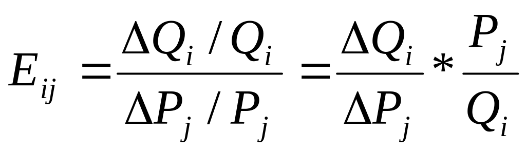 Перекрестная эластичность спроса по цене характеризует относительное изменение объема спроса на один товар при изменении цены другого. Коэффициентом перекрестной эластичности спроса по цене называют отношение относительного изменения спроса на i-ый товар к относительному изменению цены j-го товара.