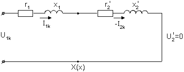 Рис. 14.6. Схема замещения приведенного трансформатора в режиме короткого замыкания