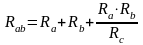 Формулы преобразования треугольника сопротивлений в эквивалентную звезду: