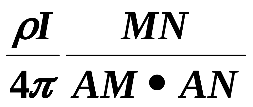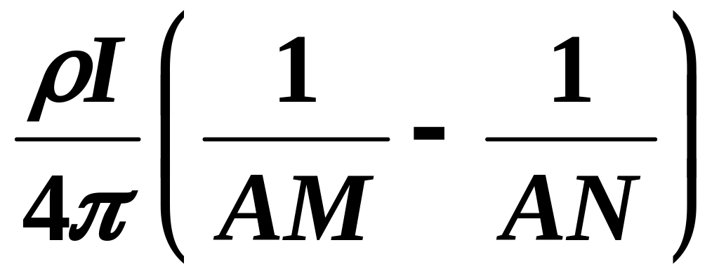В однородном изотропном пространстве потенциалы электрического поля в точках M и N, расположенных соответственно на расстояниях АМ и АN от электрода А, рассчитываются по следующим выражениям: