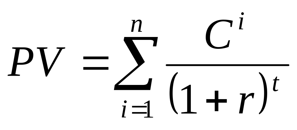 где Сi — денежный поток в году t;t — порядковый номер года; r — ставка дисконтирования.