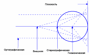 центральные (гномонические) – центр проектирования находится в центре Земли;