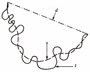 относительная извилистость α – отношение длины линии l со всеми извилинами к длине плавной огибающей s: α = l/s;