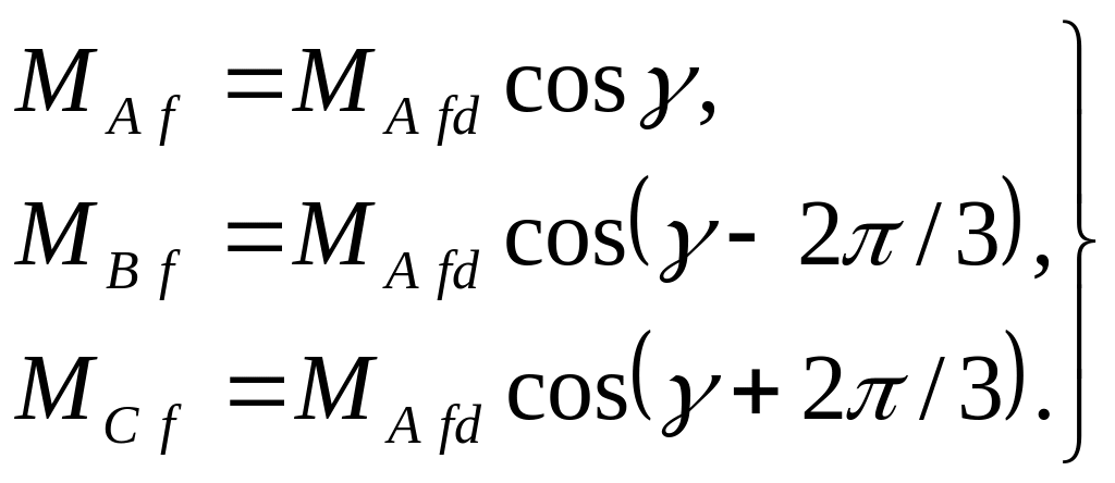 Оскільки обмотка збудження, яка розміщена на роторі СГ, переміщується відносно статора, то взаємні індуктивності між ОС і ОР будуть періодично змінюватися, досягаючи максимального значення МАfd при суміщенні магнітних осей обмоток: