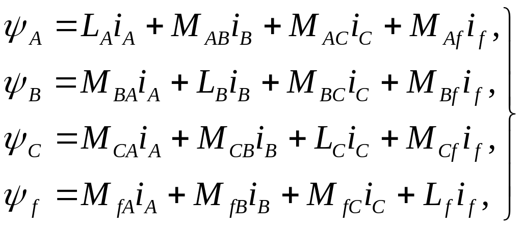 Згідно з прийнятими припущеннями повні потокозчеплення обмотки є лінійними функціями відповідних струмів